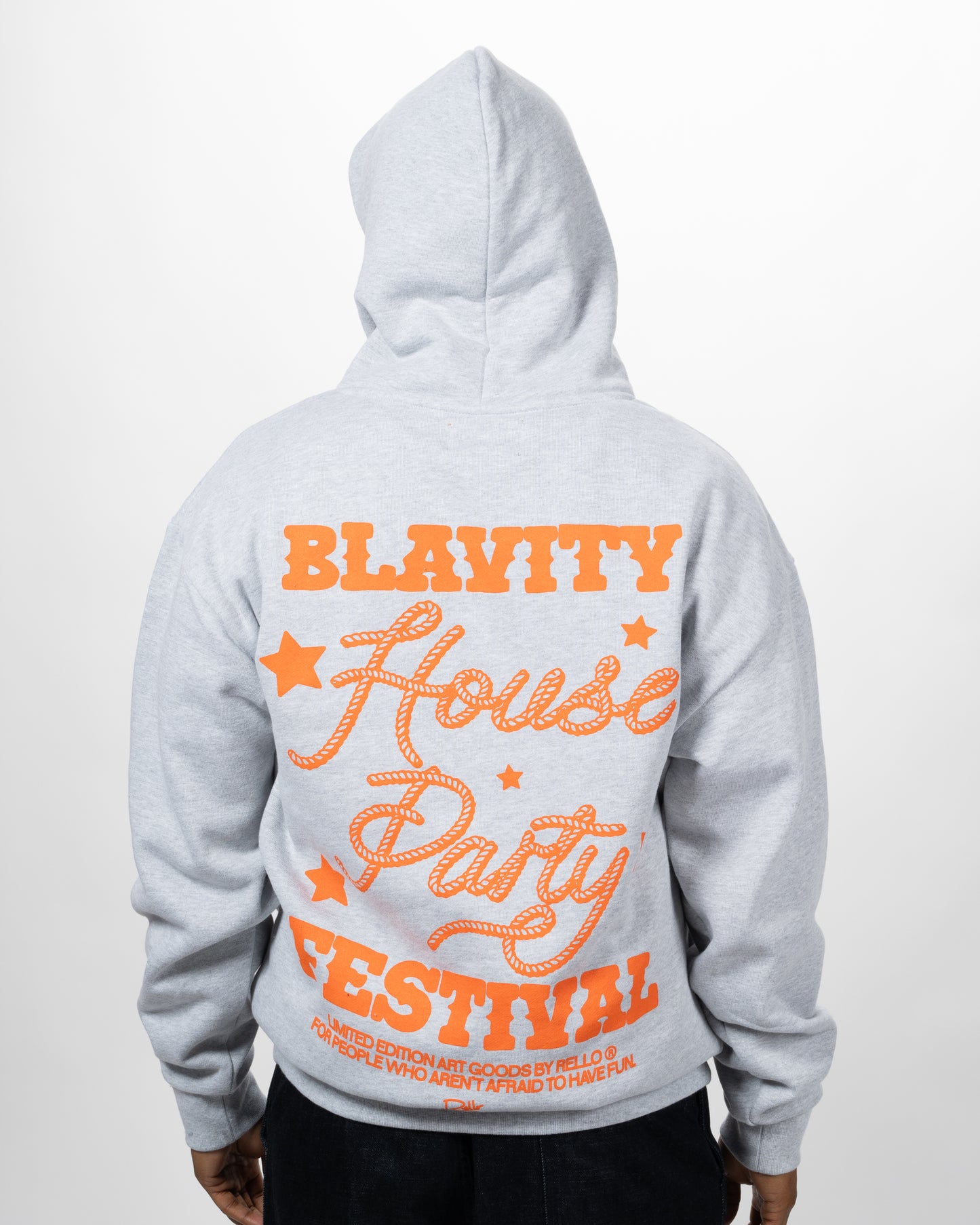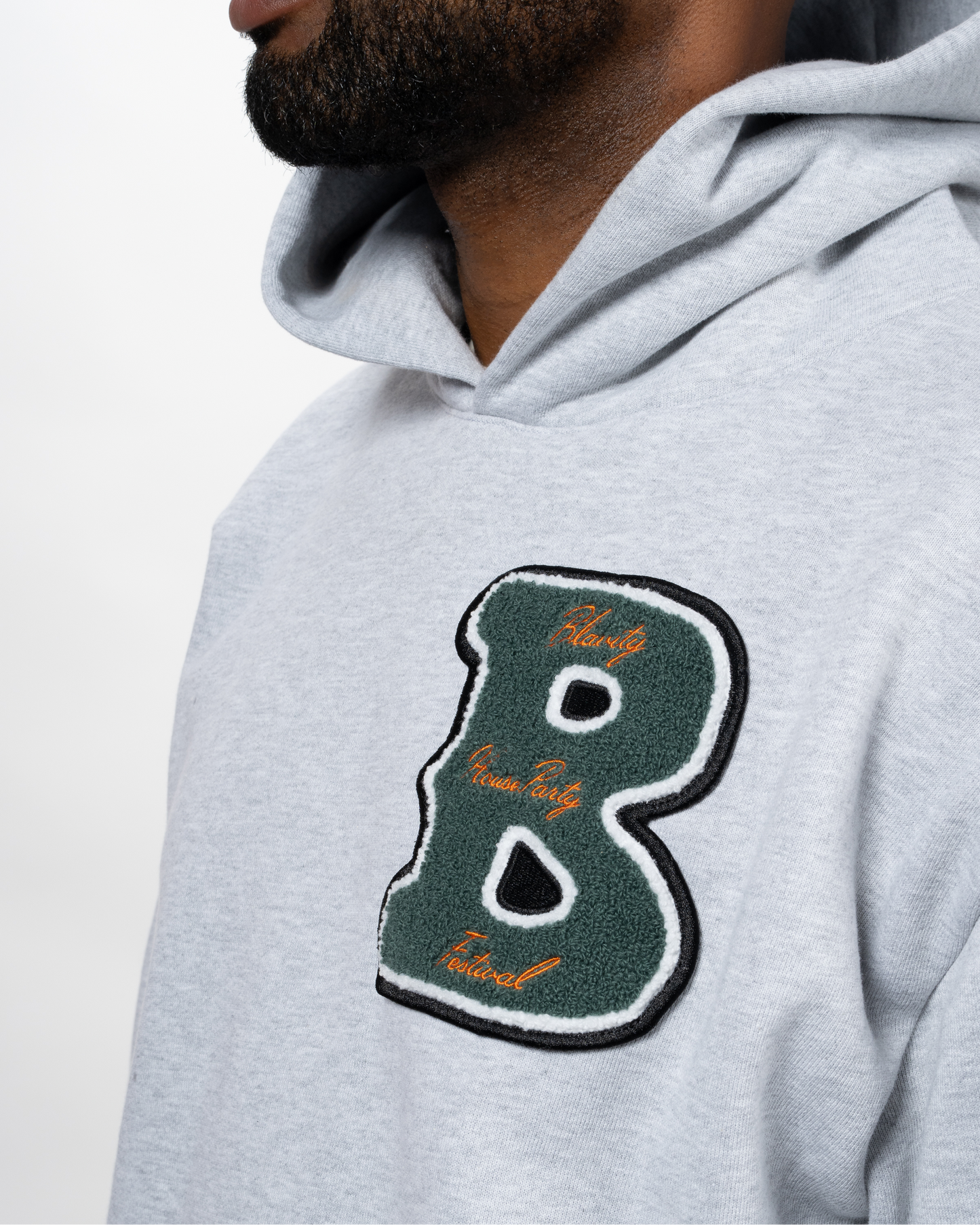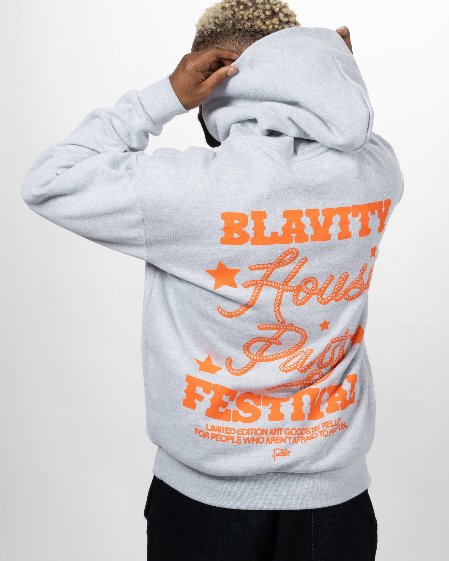 Make a bold statement with our Blavity House Party Rodeo Hoodie, the ultimate blend of comfort and iconic style. Large, bold Blavity House Party rodeo-themed illustration and tastefully branded chenille patch "B" on the left chest adds a touch of sophistication and festival pride.