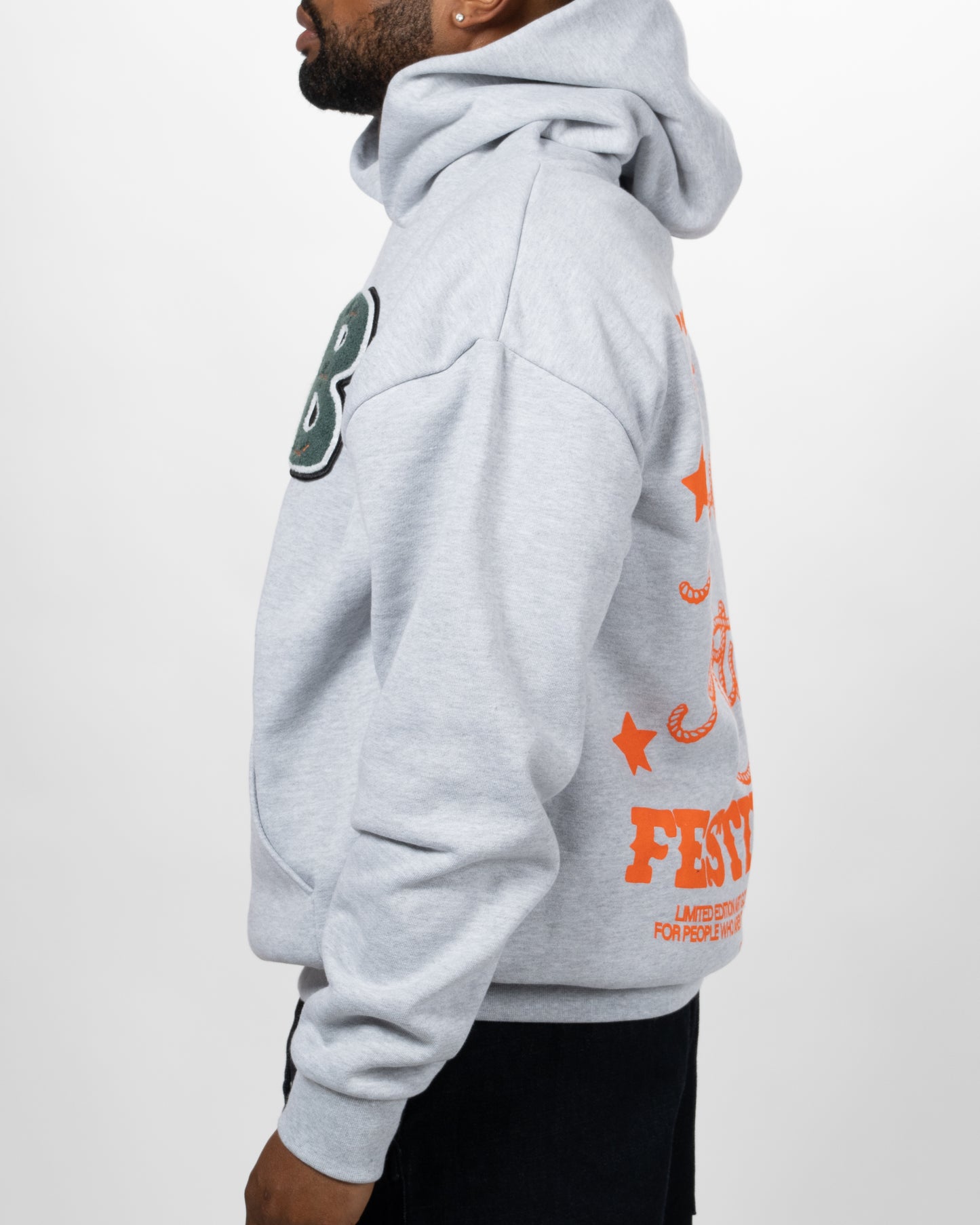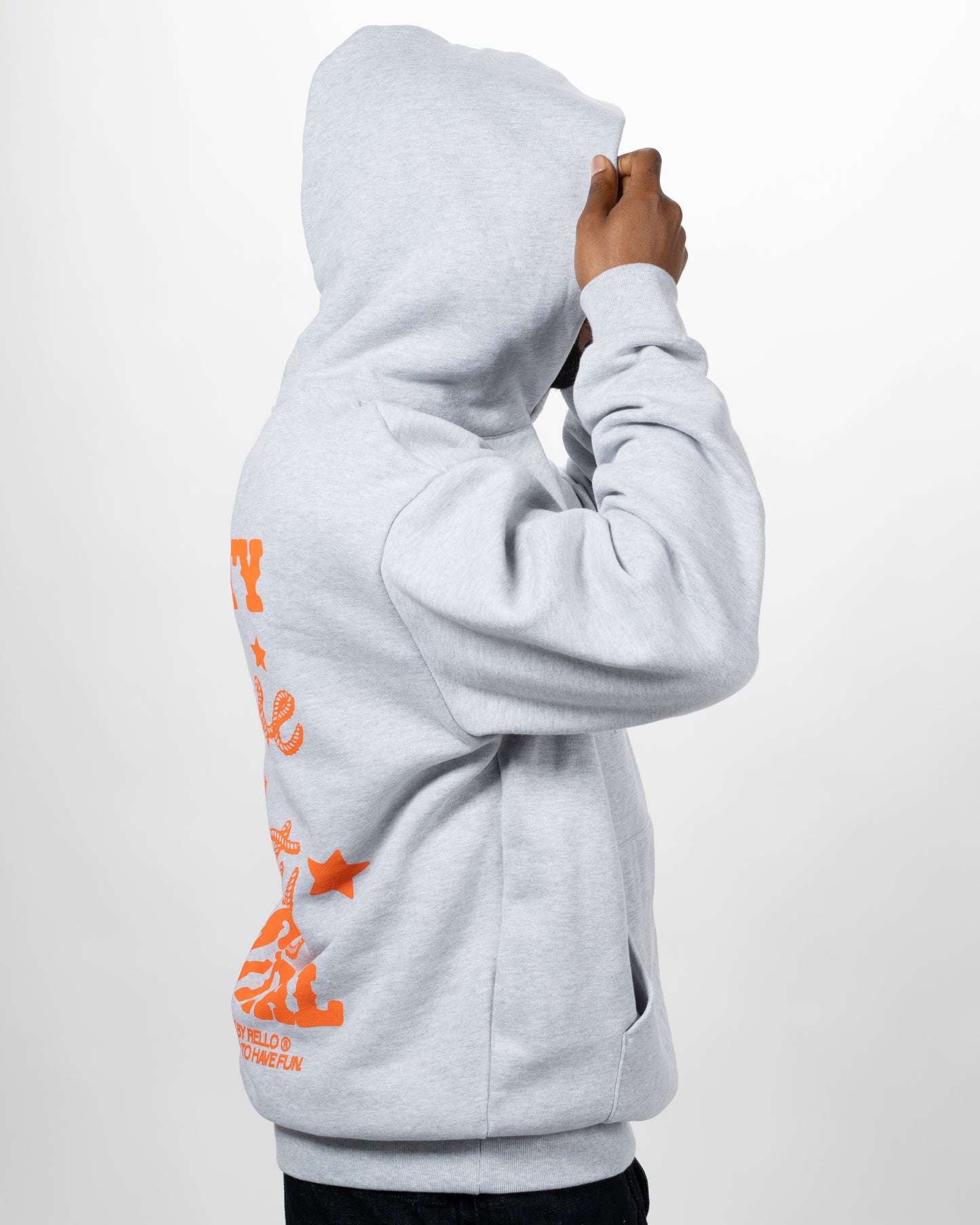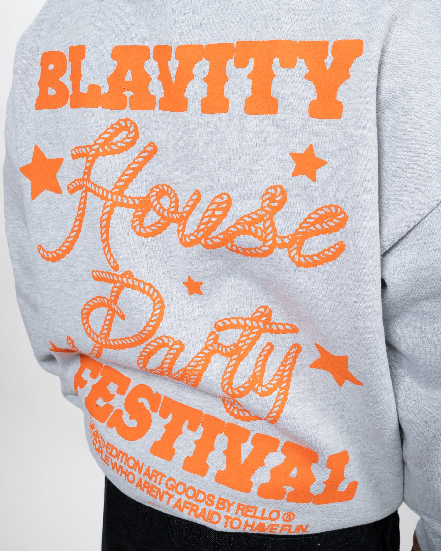 Make a bold statement with our Blavity House Party Rodeo Hoodie, the ultimate blend of comfort and iconic style. Large, bold Blavity House Party rodeo-themed illustration and tastefully branded chenille patch "B" on the left chest adds a touch of sophistication and festival pride.
